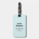 En bagagemärke med en vacker bild av en svart och vit prickad ko med röd hatt.