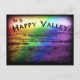 Northampton och det banbrytande dalområdet i westerna Massachusetts kallas ibland "den lyckliga dalen". Detta foto av dalen göras upp till looknågot liknande som en gammal vykort med en regnbåge tonar och texten "besök den lyckliga dalen Massachusetts".