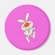 Den här vintagens tecknad är av lycklig, piskande, dans. Han plundrar på finger. Kaninen är vit med rosa kinder och en stor näsa i orangen. Bakgrunden är ljus shock rosa. Se min butikskonst efter MAR för matchning av produkter med den här designen.