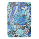 Musik, blommor och löv utgör denna pulserande målning med ett blommönster med en blandning av blåtoner och svarta konturer. Olika typer av blommor och löv, fjäril och musik noter är tätt förpackade för att skapa en levande och dekorativ design.