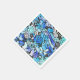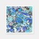 Musik, blommor och löv utgör denna pulserande målning med ett blommönster med en blandning av blåtoner och svarta konturer. Olika typer av blommor och löv, fjäril och musik noter är tätt förpackade för att skapa en levande och dekorativ design.