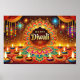 Viktig Lycklig Diwali-bakgrund med färgstark rangoli, glödande diyas och festliga fyrverkerier, perfekt för att ge firande en fin pekpenna!