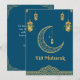 Lycklig Eid Mubarak Blue och Golden Crescent Julkort