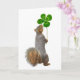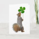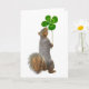 En ekorre håller en fyrlövare. Skicka det här söta ekorrekortet för Saint Patrick's Day.