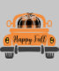 Den här roligten har plockans framsida uppåt lastbil med texten Lycklig Fall. I baksidan av lastbil finns en pumpa med en orange och en svart buffelplätering.