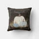 Lycklig Fall Script Blue White Pumpkins Rustic Wood Dekorativ kudde hälsar gästerna i stil varmt välkomna. Rik mörk chokladbrun, rustik ladugårdstrumsbakgrund sätter av den vita pumpen ett par dammblåpumpade och sepia tonbär och lövbladsbär från löv. All teckning målades i vattenfärg av den internationellt erkända och licensierade konstnären Audrey Jeanne Roberts, upphovsrätt.
