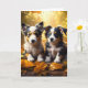 Cute Card med höstvälsignelser, Lycklig Fall Y'all. Två söta valpar spelar i Höst löv.