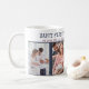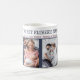 Personlig Kaffe Mugg för en ny pappa på hans första Fars dag (redigerbar för tillfälle). Fotomallen är konfigurerad så att du kan lägga till 4 av dina favoritfoton och du kan också redigera redot, tillfälle, namn och året som du vill. Utformningen har trendig-skrivmaskinstypografi och en färg-palett med djup blått och burgundi. Bläddra i vår butik om du vill ha fler fotopresenter och 1:a fars dag-presenter.