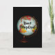 Ett färgstarkt antika glob, som fotograferas mot en svart bakgrund, är subjekt i mitt "Lycklig Fars dag till det bästa steget Pappa på jorden!" Fars dag-kort. "Best Step Pappa on Earth", i svart skrift på jordens ansikte, fyller kortet.