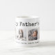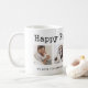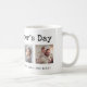 Den här enkla, svarta och vita mugg har plats för fyra av dina fyrkantiga foton och säger "Lycklig Fars dag" i vintage, skrivmaskin text typografi. Anpassa med vilket budskap som helst och namn längs grund gräns, vilket gör att du kan göra det till en gåva till pappa, farfar, styvfar eller vem som helst!
