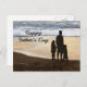 En far står med sin dotter och son och tittar på solnedgången på stranden. Ändra texten för ditt personliga meddelande.