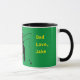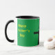 Fars dag mugg med pappa och son som fiskar utanför piren kan vara personlig med sonens namn.