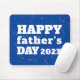 Lycklig Fars dag och året är skrivna med fetstil och vit text. Den verkligen mot ett färgstänk mönster på azurblått.