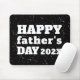 Lycklig Fars dag och året är skrivna med fetstil och vit text. Den verkligen mot ett mönster på svart.