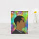 Detta färgstarka Fars dag-kort för en son har en biprofil av en ung afrikansk amerikansk pappa som bär en svart t-shirt och kedja på bågbotten. Det här kortet är anpassade, så du kan gärna ändra texten efter eget önskemål.