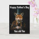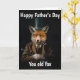 Det här Fars dag-kortet illustreras med en viktoriansk räv i top hat och texten "Lycklig fars dag du old fox"