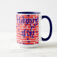 Kreativets bildupptagning, designad den här, grafiska konsten, av mörk-blått "Lycklig Fjärde", som visas mot en, röd och vit, strimlad, flagga-med marinblå och vit stjärna, spridd över varandra.