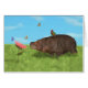 Lycklig flodhäst, blomma, fjärilar hälsningskort