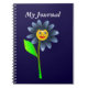 Utformningen visar ett sött blomtecken som Ulla Hennig ritat och målat med Inkscape. Utformningen placeras på en mörk blått bakgrund tillsammans med titeln "Mitt Journal". Du kan enkelt byta färg i bakgrunden och infoga ditt eget ord genom att klicka på knappen "anpassa".