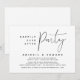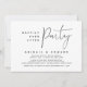 Detta är bröllopsinbjudan för bröllopsflyktfesten, med minimalistisk svart typsnittsdesign (lycklig för evigt fest).