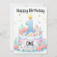 Lycklig första födelsedag med en Cute Birthday Cake, Flowers och Number One Spread joy, cheer, merry allting och en lycklig alltid! Helgdagskort som är designade för att göra hela året ljusare.