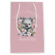Kylvattenfärgen koala är utformad för en flickas första födelsedagsfirande. Cute Australain koala är försedd med rosa blomsterplåt och kan anpassas för vilket år som helst och namn. Anpassning: anpassa för en milstolpe på födelsedagen och namn.