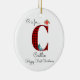 Lycklig första julklappsbonden i träd julgransprydnad keramik