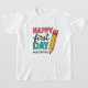 "Starta skolåret i stil med Lycklig första skolskiftet. Perfekt som en tänkbar lärargåva, daghem tröja för lärare eller en skolgaranti. Perfekt för läraruppskattning, personalevenemang och klassrum firande. Bekvämt, snyggt, och att sprida positivitet på skolans första dag."