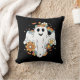 En kudde med en illustration av ett leende spöke. Dekorerad med blommor, regnbågar och fladdermus.