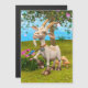 3D-rendering av en lycklig-tecknad-get i en fantasi-trädgårdsbakgrund