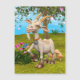 3D-rendering av en lycklig-tecknad-get i en fantasi-trädgårdsbakgrund