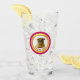 Lycklig golden uggla på beige bakgrund med gyllene och burgiga röda ram. Lycklig uggla kan anpassas.
