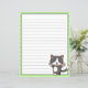 Skär lycklig grått kitten på fodrad papper, med abstraktens grönt över. Tillbaka som framsidan utan kattunge.