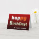 Det här lysande och roliga Grattis på födelsedagen-kortet med röd bakgrund och vit och orange är ett affärsmässigt hälsningskort för perfekten att önska dina kunder ett Grattis på födelsedagen.