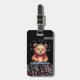 Roligt Luggage Tags med en Lycklig Grizzly Bear DJ med stora hörlurar och musik på röstbord. Musik Jungle-texter och noter flyter runt. Anpassa med ditt namn eller ta bort i "redigera".