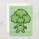 Cute grönt tecknad broccoli med ett lycklig ansikte. Bakgrunden är en grönt och vit gingham mönster.