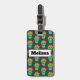 En personlig för bagagetagg på framsidan och din personliga information på baksidan mellan två vintagar-tittar delare. Skapat med ett upprepande mönster på framsidan. En söt illustration av en plump round cactus med stort kawaii öga, leende och med röd sombrero. Stå i en blomkruka. Bakgrunden är en svart bild av kontrollpanelen.
