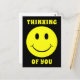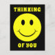 Jag tänker på dig - Cute gult lycklig ansikte. Säg till någon att du tänker på dem med den här djärva gulten på svart design. När man säger att man är på någons tankar kan det vara en underbar känsla. Att säga att de är i ditt sinne kan också kännas underbart. Underbar för att till en make/maka - hustru, make eller en vän, föräldrar, mor- och farföräldrar, släktingar, skicka ett uttryck för tillfälle.