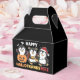 Lycklig Hallothanksmas - happy halloween, Thanksgiving och jul. Penguin är klädd som fladdermus på Halloween. Med en paj för Thanksgiving... dekorerad med julens tak..