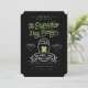 Moderna Sts Patrick designen för daginbjudan av Shelby Allison som presenterar samtida typografi och en svart tavla, utformar ölillustrationen i vit och grönt på en svart bakgrund.