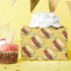 Lyckliga hamburgarepappersshows och avbildar av en födelsedagtårta som göras för att se likt en hamburgare.