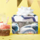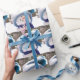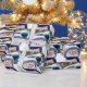 Lycklig handgjord snögubbe som slår in papper presentpapper