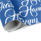 Lycklig Hanukkah-blått och vitt judiskt Helgdag-skript mönster-presenten Wrapping Papper. Vit manustext mönster på blå bakgrund färg.