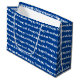 Lycklig Hanukkah blå och vit modern typografi mönster stor presentväska. Vit mönster på blå bakgrund.