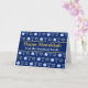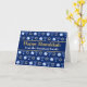 Vackra Lycklig Hanukkah-kortet i söt blått med en coola mönster av judenisstjärnan, drömidel för roligt Chanukah-spel och den judiska menorah för helgdag.