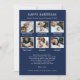 Lycklig Hanukkah Helgdag Card. Höj dina hjärtliga känslor med vår chic "Lycklig Hanukkah"-fotokort för personlig helgdag. Den här snyggtens nyckelnamn, som har ett typsnitt för vintagen skrivmaskin och ett blanksteg för 7 (fram- och baksida) familjefotografier, är en perfekt blandning av nostalgi och stil. Vit text på en marin blå bakgrund förstärker dess visuella dragningskraft. Anpassa och gör dina minnen tidlösa!