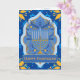 Ett vackert hälsningskort och ett hälsningskort för eleganten som önskar någon en Lycklig Hanukkah. Perfekt för firande på den judiska festivalen i ljus. Ljuset i färg med en menorah framför sig omgiven av oliver och grenar, färglöst ramar och David stjärnor på royalets blå bakgrund och ljust gula blommor på hörnen. Klassisk och modern samtidigt med fler judiska symboler inuti och bakom kortet. En Lycklig Hanukkah i ram framför. Den inre massage kan ändras av dig till kostym om du behöver lägga till ett citat som du tycker bäst om att lägga till ditt eget hälsning och till och med din familj namn eller ett speciellt engagemang för en viss person, familj, vänner eller medarbetare. Hur speciell kommer den personen att känna när han eller hon får ett kort med ett hälsning tillverkat av dig, eller bara lämnar det som det är. Du kan också välja att ladda ned det och skicka det till många fler digitalt.