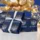 Den moderna utformningen av konsten och menorah i ord ger en underbar blick i dag, men den traditionella paletten färg kommer att tilltala ett stort antal mottagare från unga till gamla. Djupblåa hues med vit färg och säsong Hanukkah-inslagningen papper kan matchas med "Modern Hanukkah Blues"-insamlingens ensamrätt designad av SalonOfArt.com.