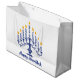 En stor giftbag med Lycklig Hanukkah Menorah, vilket betyder