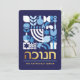 Hanukkah/Chanukah Blue White Modern Geometric Mönster Card med Faux Gold Foil. Menorah, Dreidel, Donuts, Stars och olivolja... De är alla här. Hebreiska och judiska Hanukkah-symboler + blanksteg för att lägga till personligen på framsidan och baksidan. Lycklig Hanukkah önskemål. Hebreen på framsidan säger "Chanukah". Detta storskaliga, vackra, utseende är ett underbart sätt att önska vänner, familj och kunder, ett mycket Lycklig Hanukkah/Chanukah. Om du vill se en ändring av den här designen kan du skicka ett meddelande till oss eller skicka ett e-postmeddelande till BestDressedBread@gmail.com.